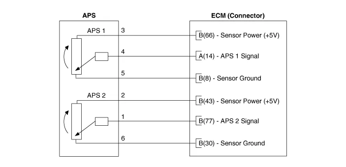 | 3. | Measure the output voltage of the APS 1 and 2 at C.T and W.O.T.