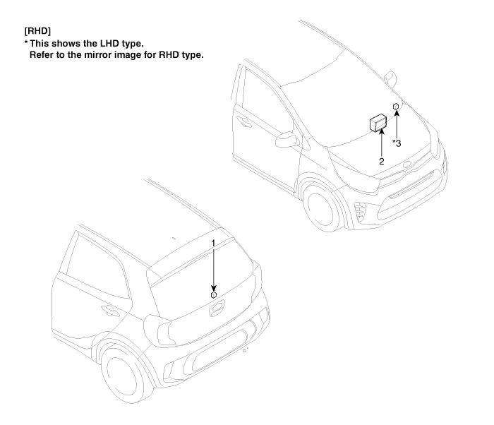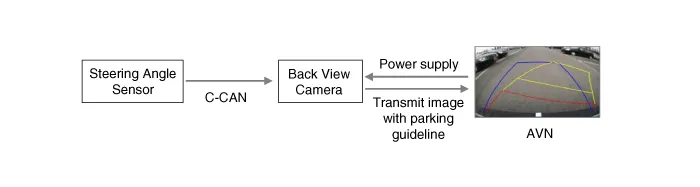 | 1. Back view camera 2. AVN head unit | 3. steering angle sensor |