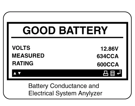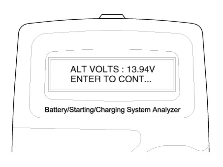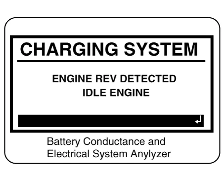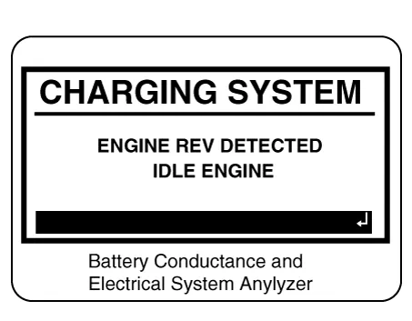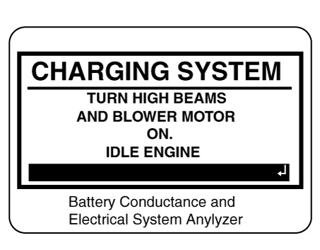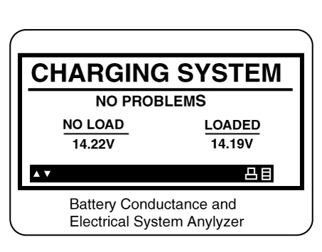 | For an in-vehicle test, the display alternates between the test results and the message “PRESS FOR CHARGING TEST. |