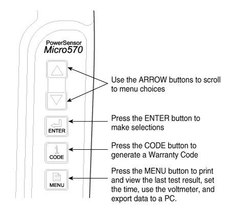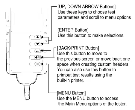 | 19. | Press the BACK/PRINT button to print the test results or MENU to return to the Options Menu. |