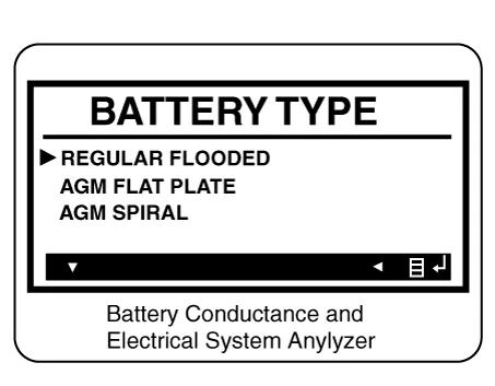 | 3. | Scroll to and select REGULAR FLOODED, AGM FLAT PLATE, or AGM SPIRAL where applicable.