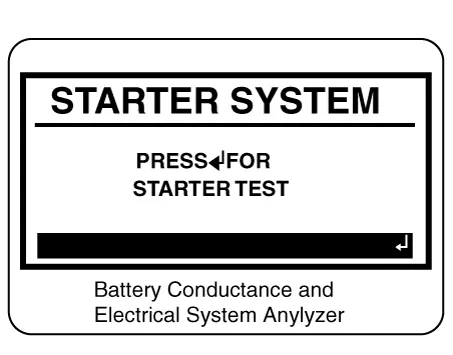 | For an in-vehicle test, the display alternates between the test results and the message “PRESS FOR STARTER TEST. |