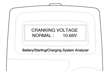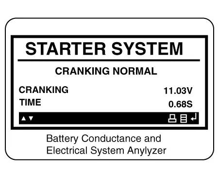 | 10. | The tester displays the status of the starter system, cranking voltage, and cranking time in milliseconds.
