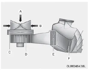 The climate control air filter installed behind the glove box filters the dust or other pollutants that come into the vehicle from the outside through the heating and air conditioning system.