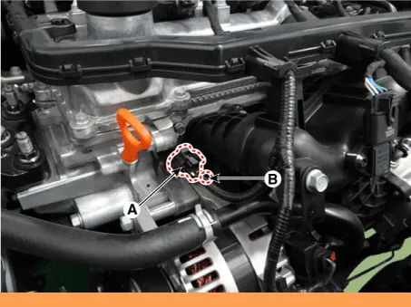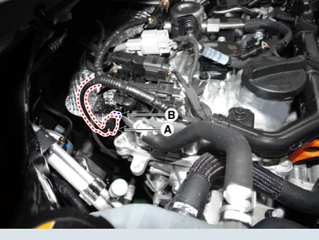 | 2. | Disconnect the CVVT oil control valve connector (A). |