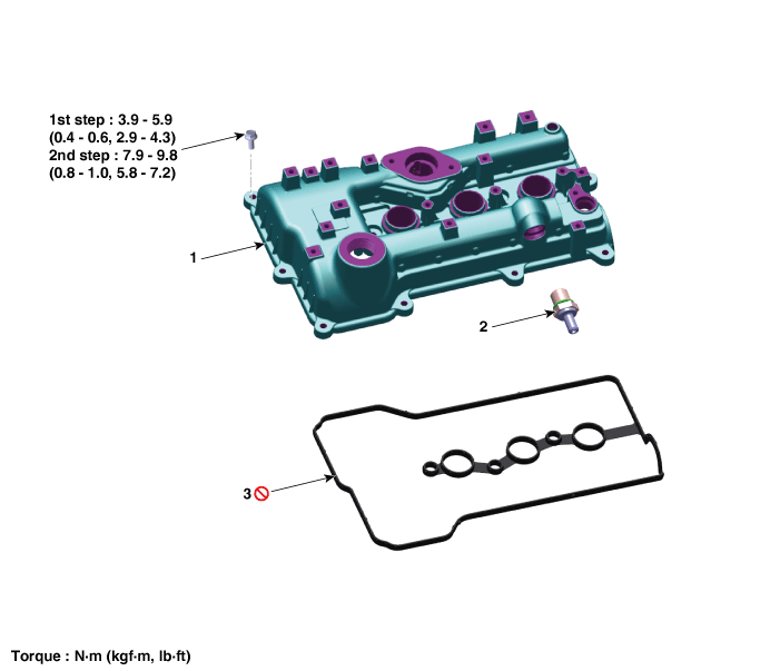 | 1. Oil filler cap 2. Cylinder head cover | 3. Cylinder head cover gasket |