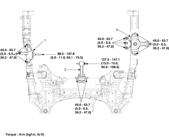 | 1. Engine mounting bracket 2. Roll rod bracket | 3. Transaxle mounting bracket |