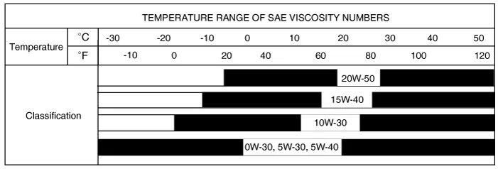 | 2) | Have proper SAE grade number for expected ambient temperature range. |