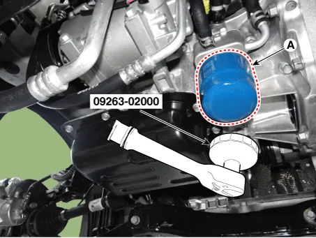 | 2. | Replace the oil filter (A). | (1) | Using the SST (09263-02000), remove the oil filter (A). |