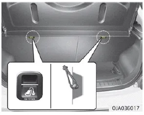 2. Connect the top-tether strap to the top-tether anchorage, then tighten the top-tether strap according to the instructions of your Child Restraint System's manufacturer to firmly attach the Child Restraint System to the seat.