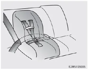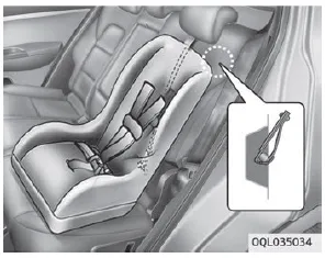 1. Route the Child Restraint System top-tether strap over the seatback. Placing the top tether strap, please follow the instructions of the Child Restraint System manufacturer.