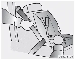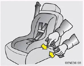 4. Push and pull on the Child Restraint System to confirm that the seat belt is holding it firmly in place.